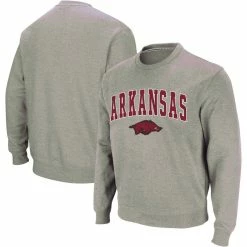 Men's Colosseum Heather Gray Arkansas Razorbacks Arch & Logo Crew Neck Sweatshirt