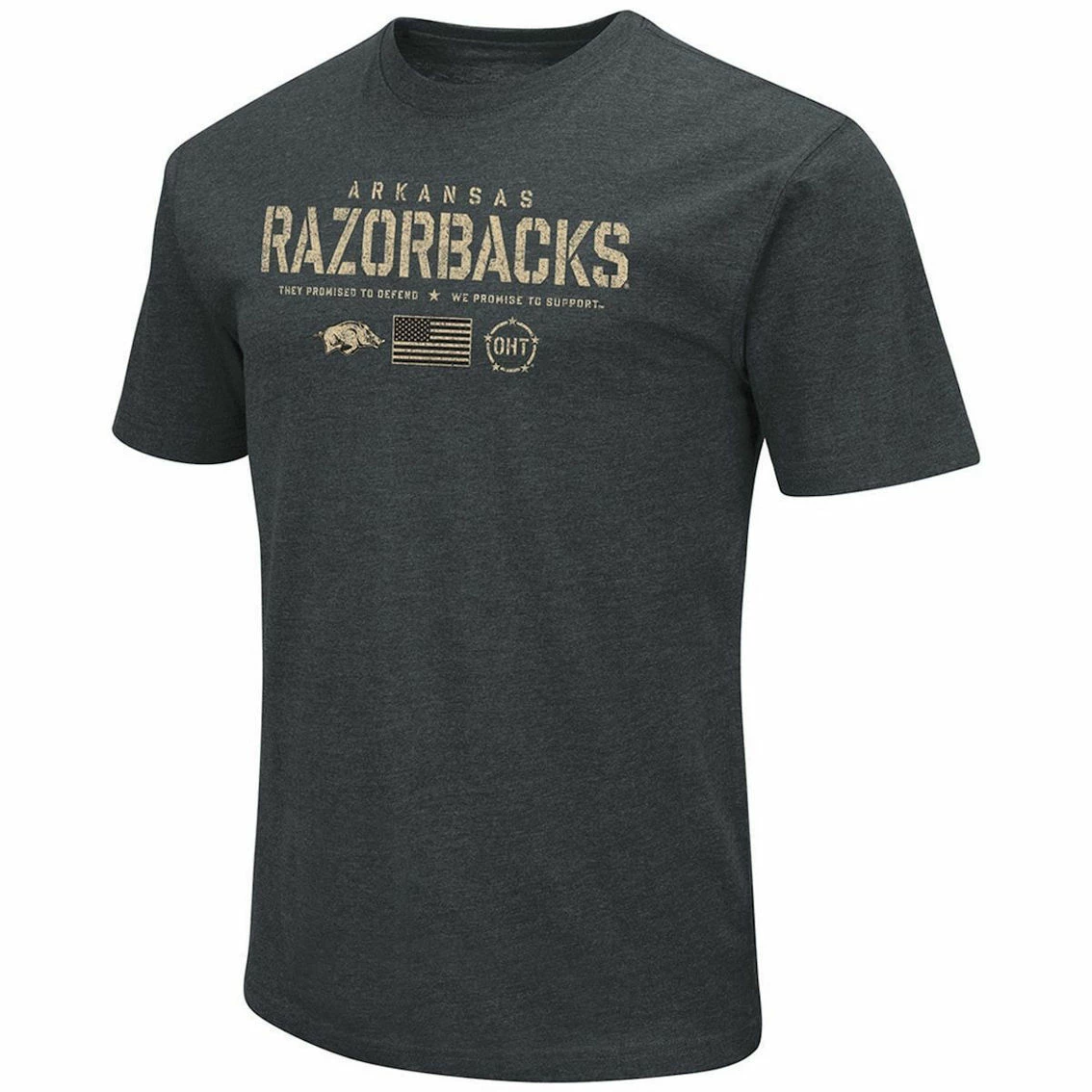 - Show off your Arkansas Razorbacks spirit with this OHT Military Appreciation Flag 2.0 T-shirt from Colosseum. Designed with distressed details for a vintage look, this casual tee is great for everyday wear. The ultra-soft material maximizes comfort, helping you feel great as you cheer on the Arkansas Razorbacks.