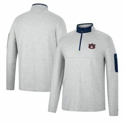 Men's Colosseum Heathered Gray/Navy Auburn Tigers Country Club Windshirt Quarter-Zip Jacket